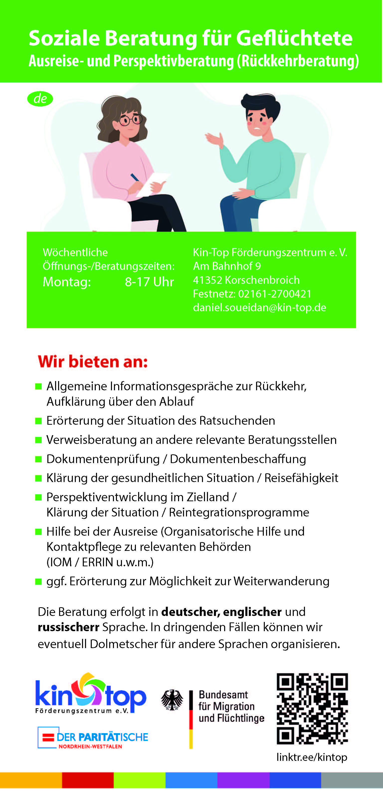 Soziale Beratung für Geflüchtete Social Counseling for Refugees in Korschenbroich Kin-Top Förderungszentrum e.V.